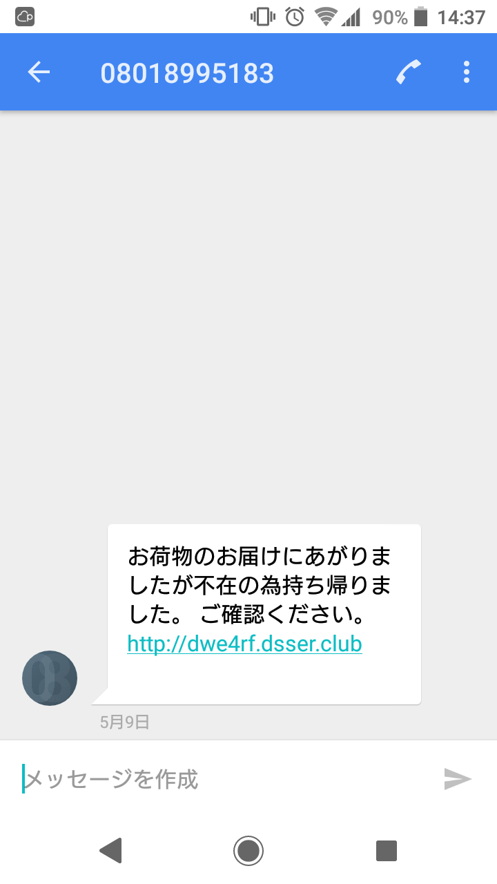先日携帯電話のショートメールに知らない人から連絡が来た。