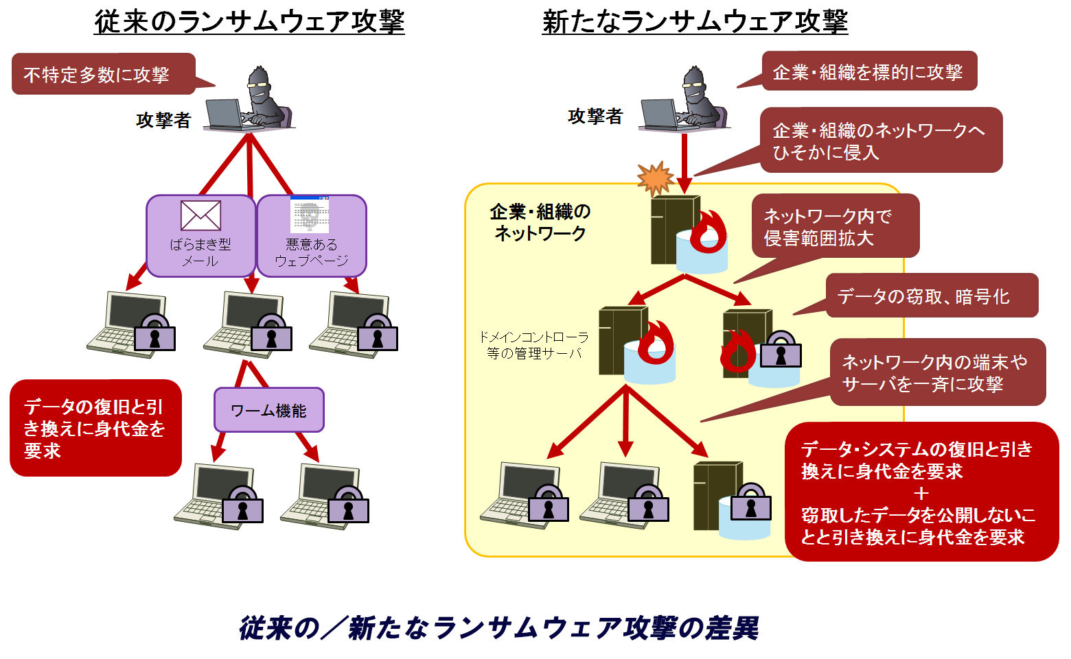 hiro_ retweeted: 事業継続を脅かす新たな #ランサムウェア攻撃 のレポートを公開。一昨年前から確認されている「人手によるランサムウェア攻撃」「二重の脅迫」の2つの攻撃方法を解説しています。より確実に高額な身代金を得るための攻撃と考えられ、レポートではその対策も解説しています。 ipa.go.jp/security/annou…