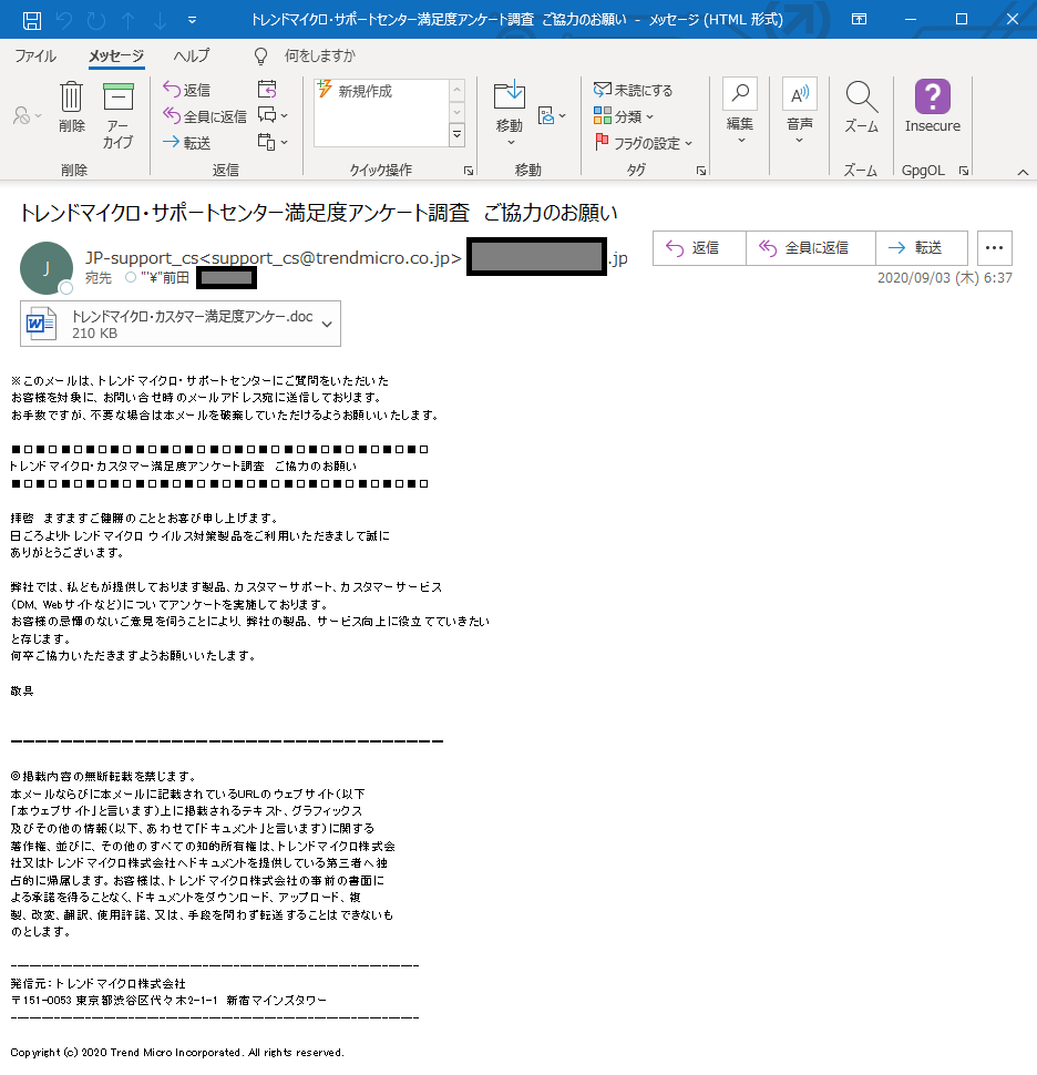 【注意喚起】Emotetがトレンドマイクロを騙ったメールをばらまく: