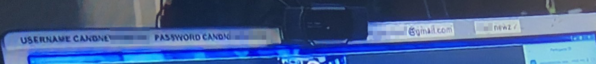 画面の下側にも、 IDとパスワードらしきものが貼られています。グラハム氏の記事ではGmailとZoomアカウントらしきものが見えると書かれていましたので、恐らくこちらがZoom用だと思われます。