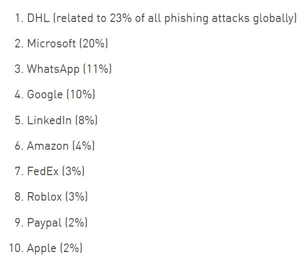- DHL (全世界のフィッシング攻撃の23%に関連)