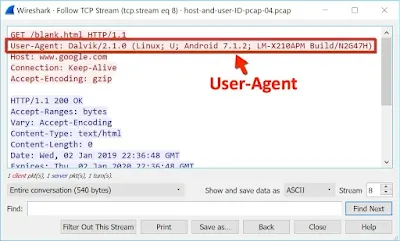 HTTPトラフィックのヘッダにあるUser-agent文字列からオペレーティングシステムを確認できることがあります。HTTPトラフィックがAndroidデバイスからのものであれば、デバイスの製造元とモデルも判断できます。